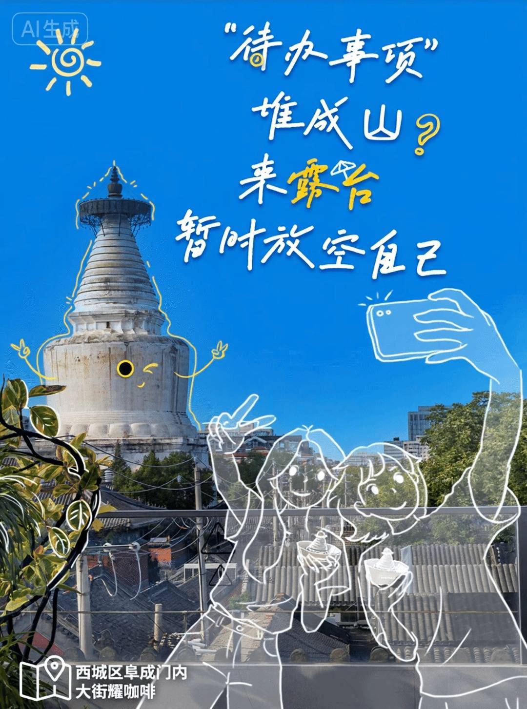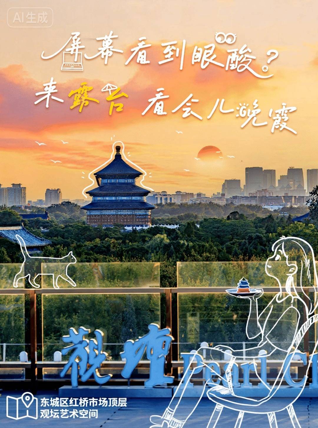 东城区红桥市场顶层观坛艺术空间西城区阜成门内大街耀咖啡朝阳区麦子店街53号亮马港湾大厦院内中楼海淀区中关村ART PARK大融城石景山区石景山路68号3号高炉C馆通州区滨河北路注:图中照片来源于实景拍摄,动态效果由AI生成。 今天天气不错~要不要一起去走走?放下工作的忙碌去感受今天的晚风吧~更多北京露台好去处,详戳→「链接」来源:北京市商务局